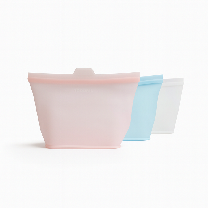 Sillyboos återanvändbara silikonpåsar – hållbara, slitstarka och gjorda för vardagen. Perfekta för snacks, mat och förvaring i kyl eller frys. De tål både mikro och diskmaskin och ersätter engångsplast direkt. Smart för dig, snällt mot planeten.